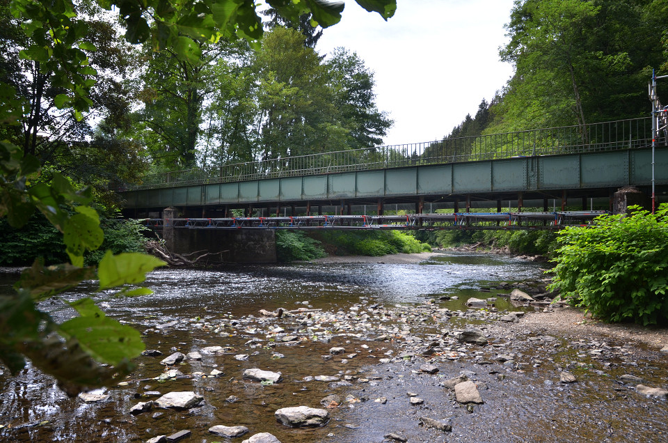 marode Wupperquerung mit Hilfsgerüst